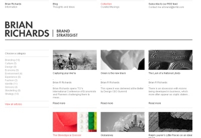 Brian Richards Blog site – a showcase for the musings of Brian Richards and his associates. We used Silverstripe as always, and added a few JQuery tricks to add spice to the site, but in essence it is minimal, in keeping with the BRR preferences, and allowing the content to speak for itself.
